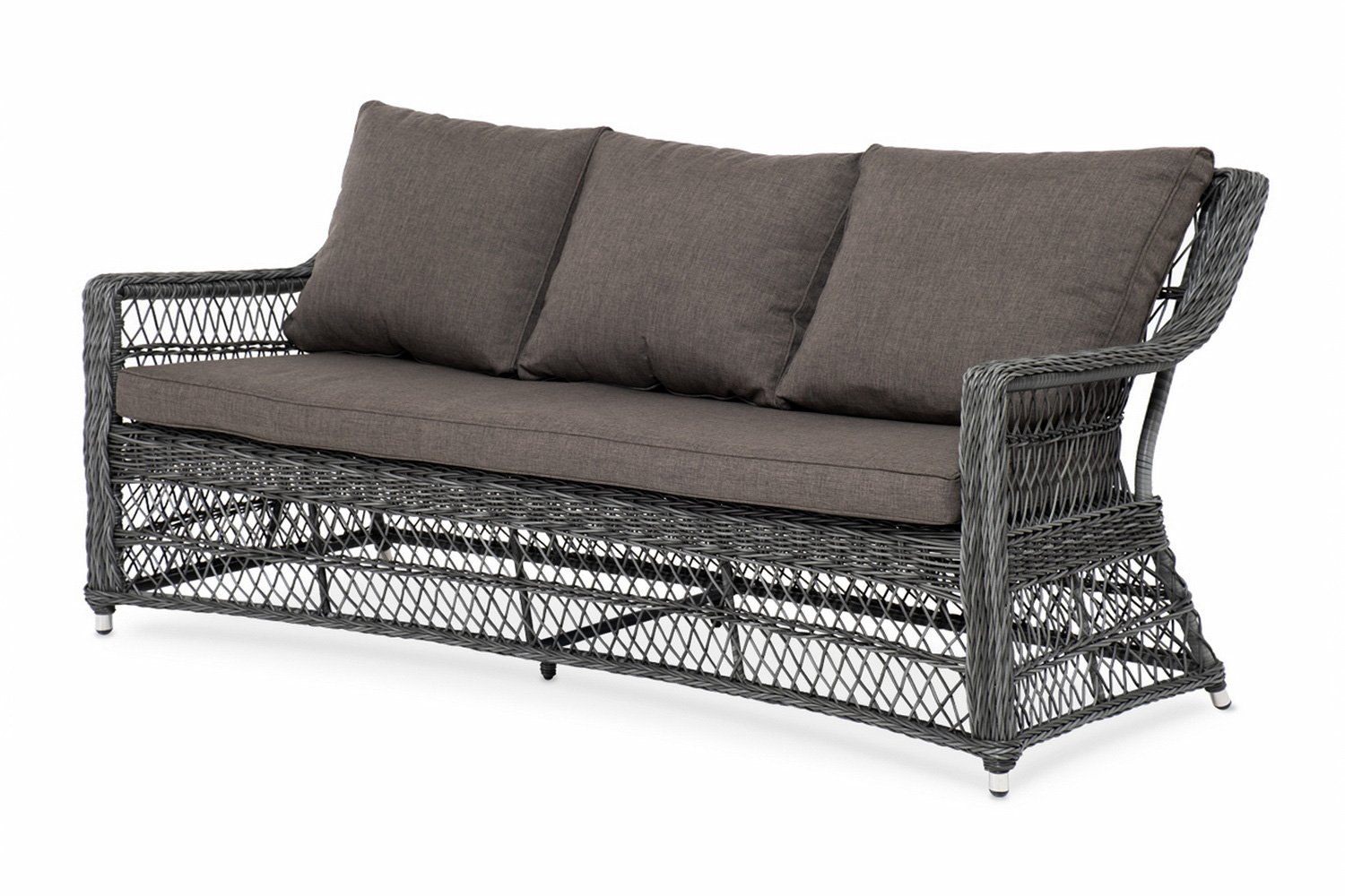 Трехместный диван Гранд Латте имеет размеры 187х85х83 см и покрашен в темно-серый (графитовый) цвет – универсальный оттенок для оформления беседок и веранд. Диван просторный, вмещает несколько человек, обладает удобными подлокотниками и слегка наклоненной спинкой – идеальная мебель для наслаждения природой, чтения книг или разговоров с близкими за столом на открытом воздухе.