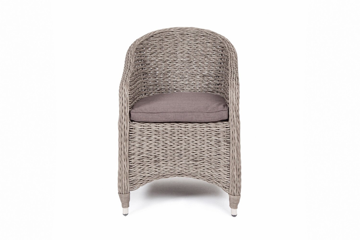 Уличное кресло 4SiS Равенна имеет размер 57х81х68 см, состоит из алюминиевого каркаса и оплетки из искусственного ротанга серого цвета. Кресло легкое, при этом очень прочное (выдерживает до 150 кг), очень приятно на внешний вид. У кресла усредненная скругленная спинка, плавно переходящая в достаточно широкие подлокотники.