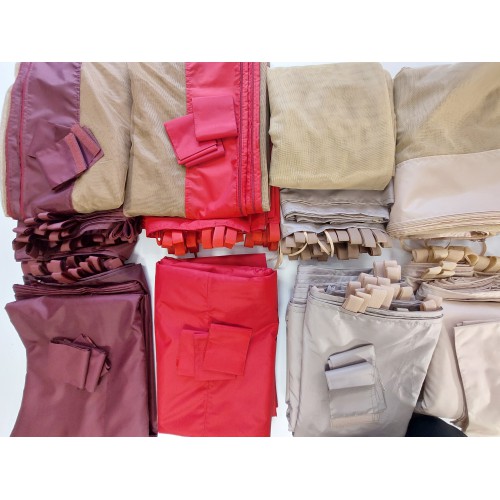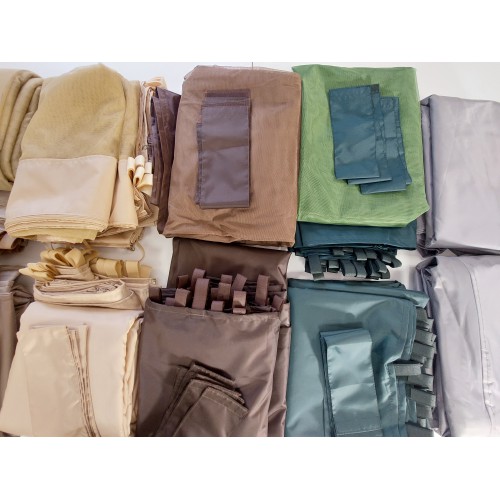 Уличные сетки в шестигранную беседку или шатер поставляются в количестве 6 штук. Каждая штора может быть в ширину 175 см или 200 см, в длину 200 см (существует возможность удлинить шторку до 220 см).