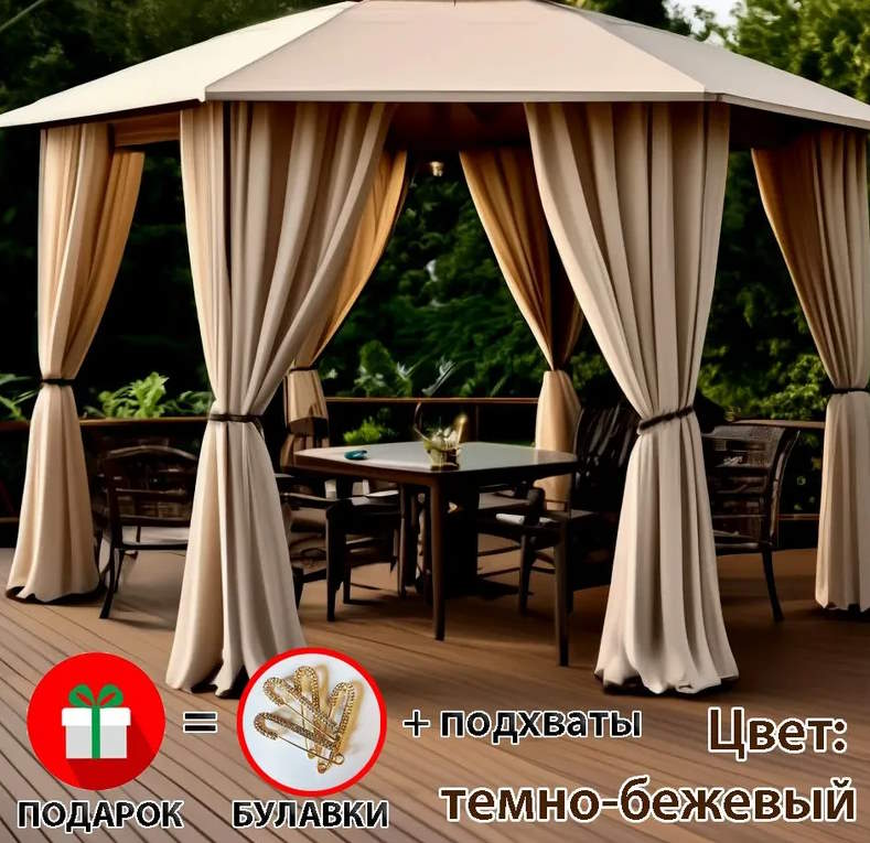 Краткое описание «Уличные шторы для шестигранной беседки из Оксфорда темно бежевый»