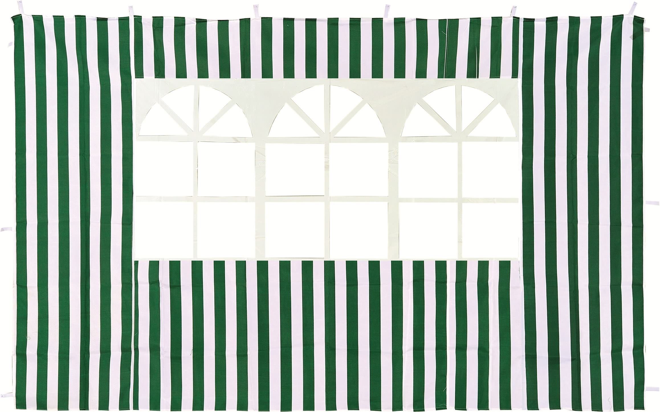 Дополнительная комплектующая садового тента фиксируется к каркасу шатра с помощью прочных липучек в виде петель. Даже при сильном порыве ветра стенка с окошком остается закрепленной.