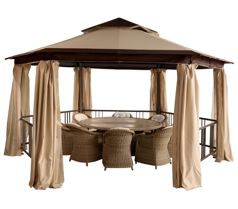 Предлагаем вам приобрести комплект, предназначенный для уличного шатра ganghao, данный комплект выполнен в бежево-коричневом цвете, в наборе находится купол с вентиляцией для шатра, стенки, а также противомоскитная сетка, благодаря которой вы будете защищены от насекомых. Купол при этом защитит от осадков и прямых солнечных лучей. Купол изготовлен из полиэстера. Данный комплект подойдёт для шатра, длина которого составляет 450 см, ширина 290 см, а высота 290 см. Шторы также изготовлены из полиэстера, они на молнии.