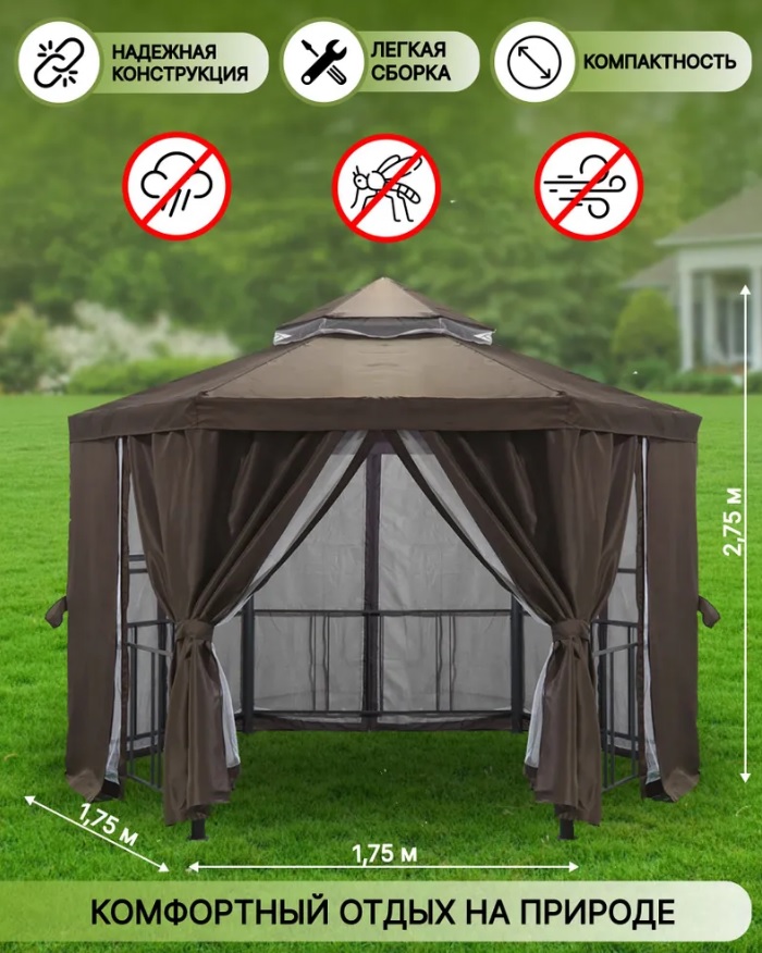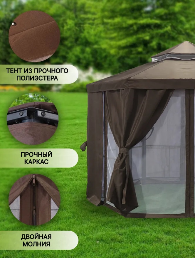 Краткое описание «Комплект для шатра ГЕКСАГОН: тент-крыша + антимоскитные сетки»