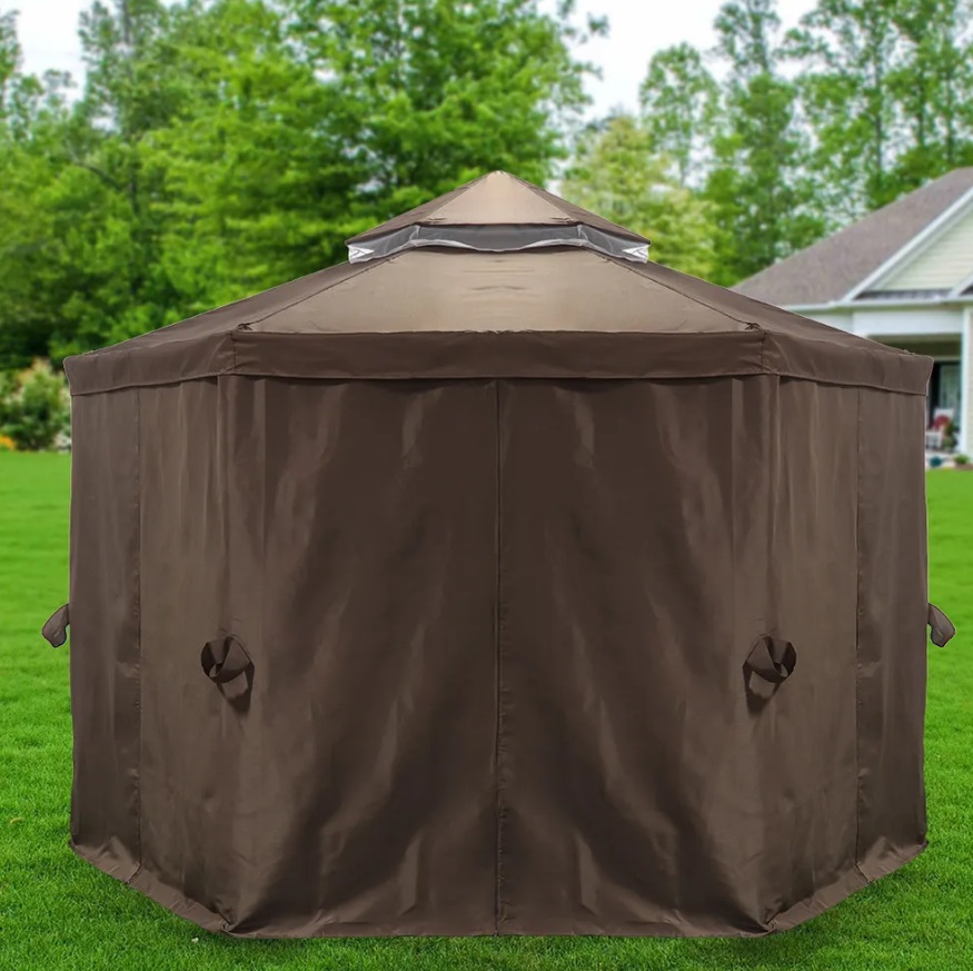 Мы хотим предложить вам приобрести тент, предназначен для уличного шатра ГЕКСАГОН, такой шатёр позволяет сделать отдых ещё лучше и защититься от прямых солнечных лучей, дождя и насекомых. Данный тент имеет цвет кофе с молоком, его размеры составляют 350 х 270 см. Также в комплекте с данным тентом находится противомоскитная сетка. Тент изготовлен из водоотталкивающего полиэстера, имеющего плотность 150 г.
